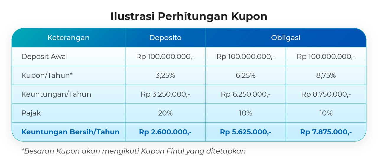 - Seri C : 5 tahun / 8,50% - 8,75%
