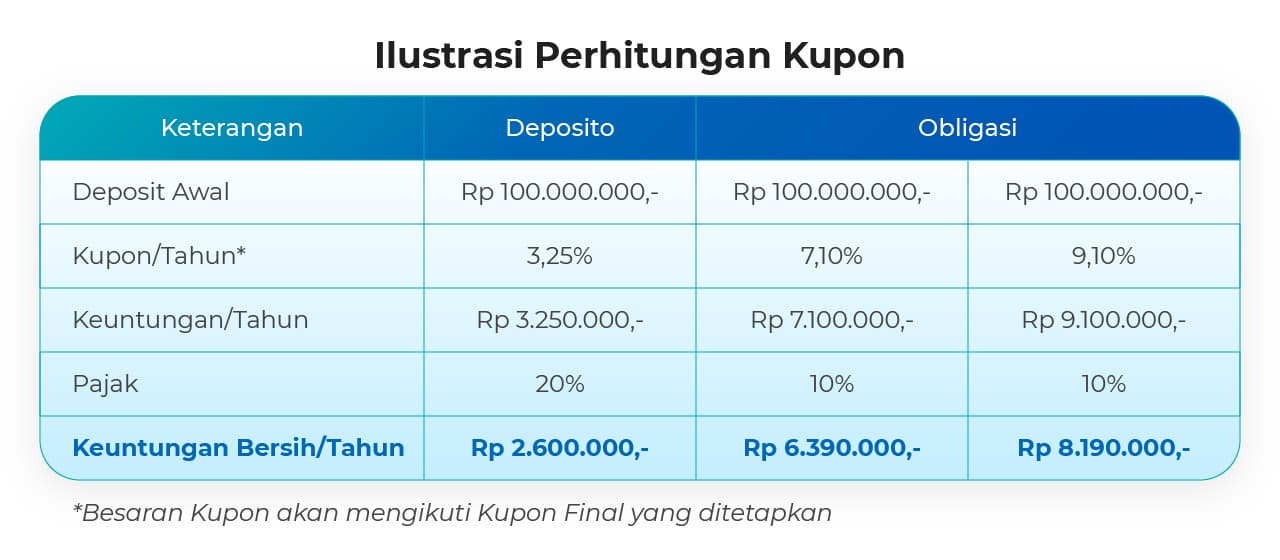 - Seri B : 3 tahun / 7,90% - 8,75%