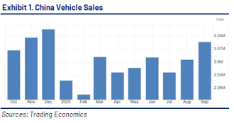 China Vehicle Sales Rose 14.9% YoY to 3.23 mn Units in Sep-25